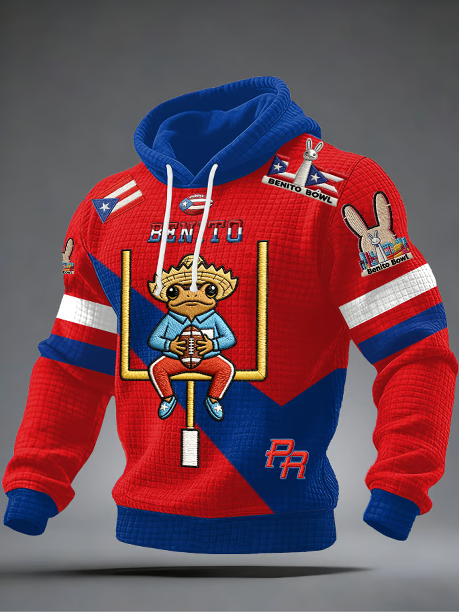 Men's Bunny Football Music Lover Printed Checkered Cotton Hoodie