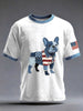 Men's Denim Patchwork Art French Bulldog Pattern Washed T-Shirt
