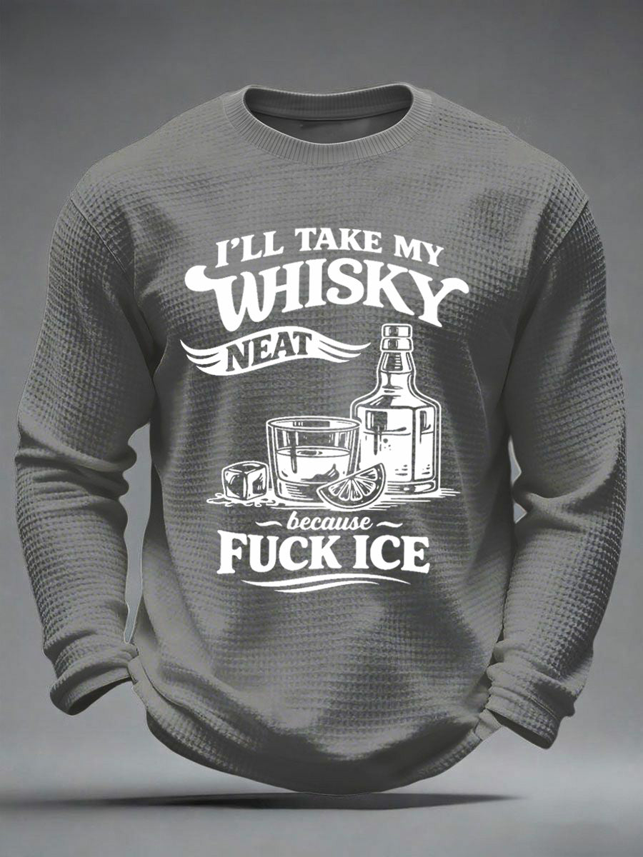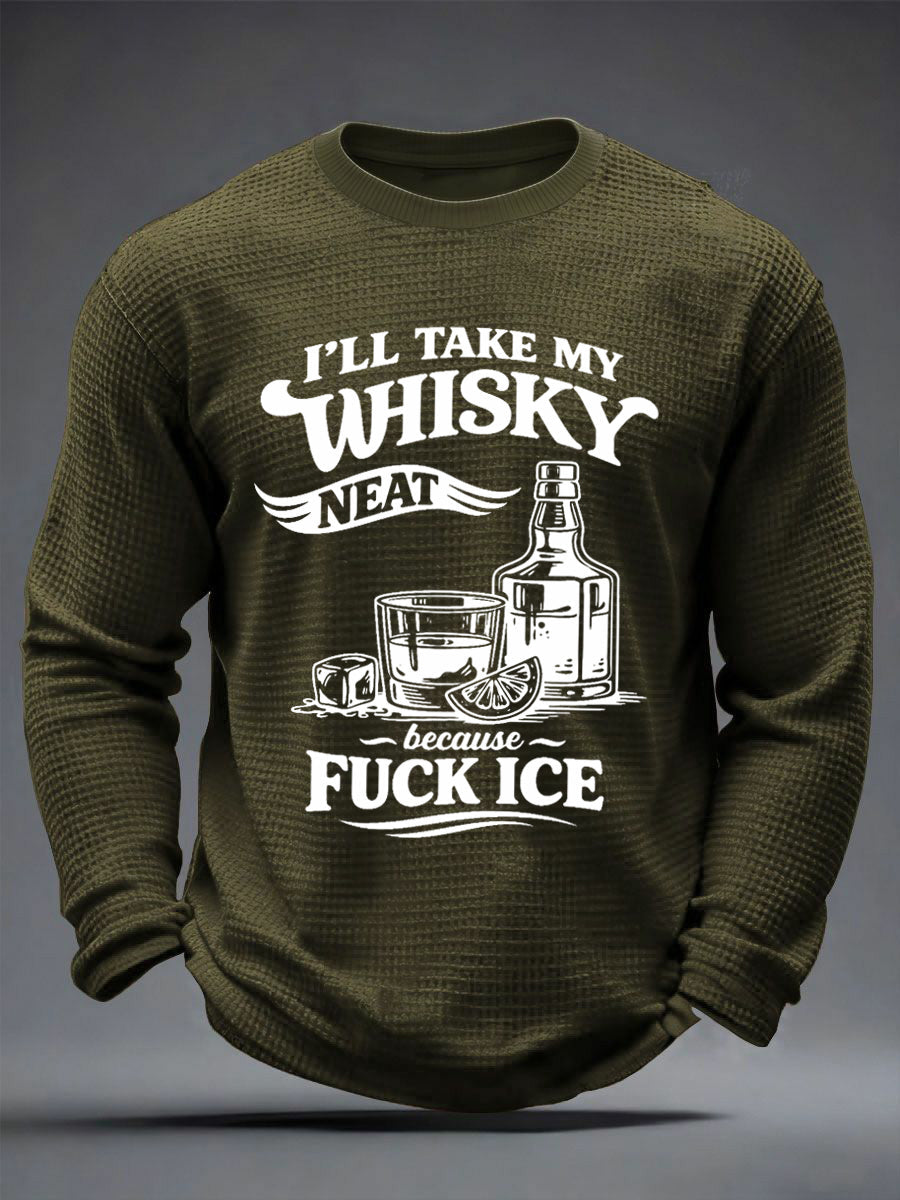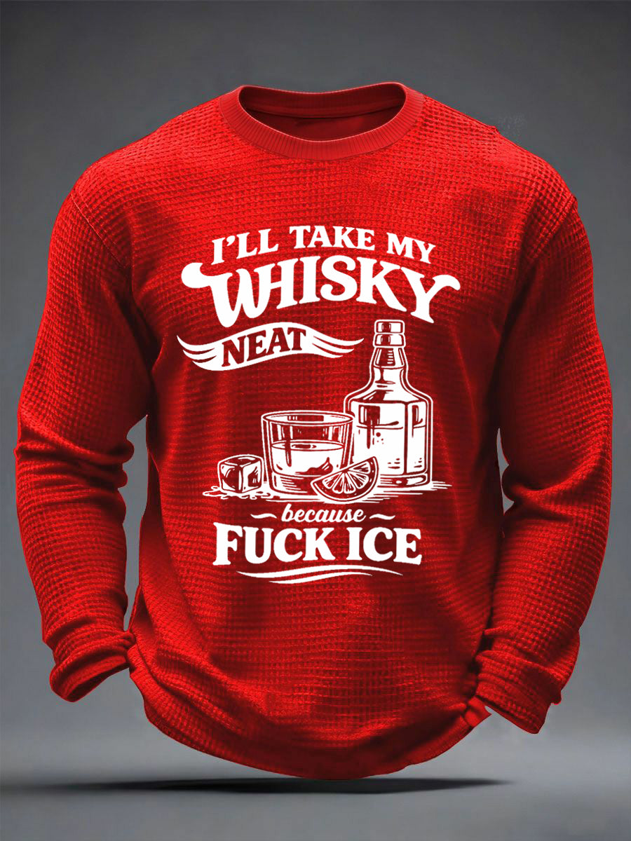 Men's I'll Take My Whisky Neat Because Fuck ICE Printed Waffle Long Sleeve T-Shirt