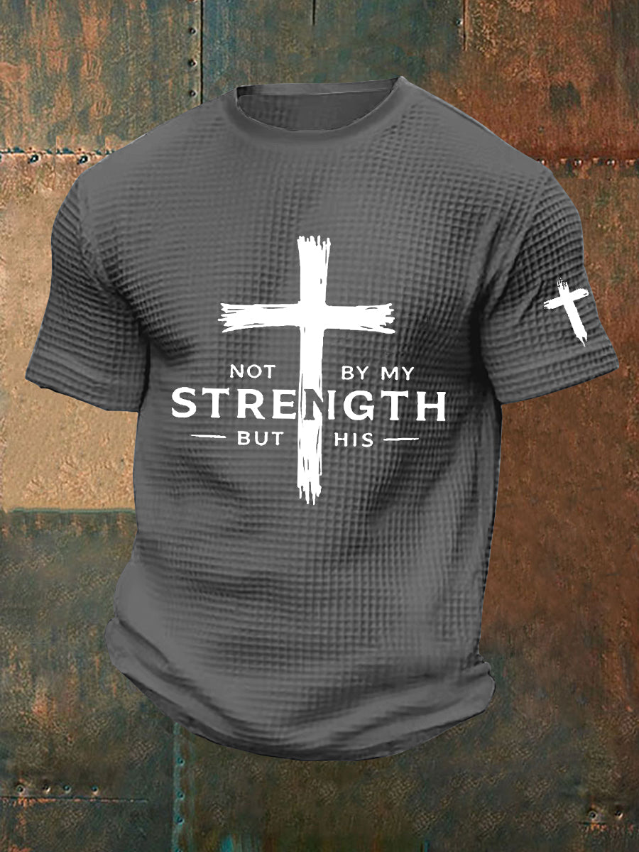 Men's Not By My Strength But His Waffle Print T-Shirt