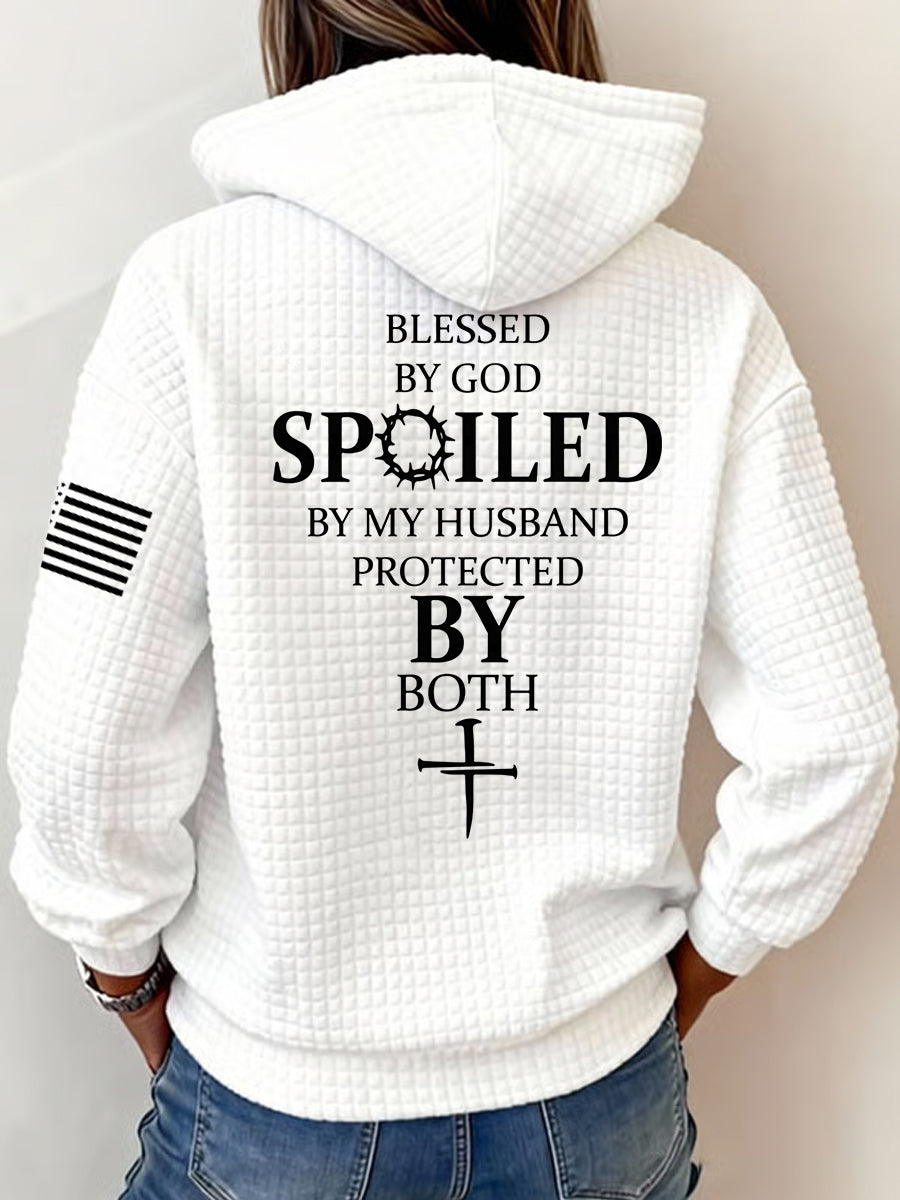 Women's Blessed By God Spoiled By My Husband Protected By Both Casual Waffle Hoodie