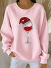 Women's Christmas Red Wine Glass Print Casual Sweatshirt