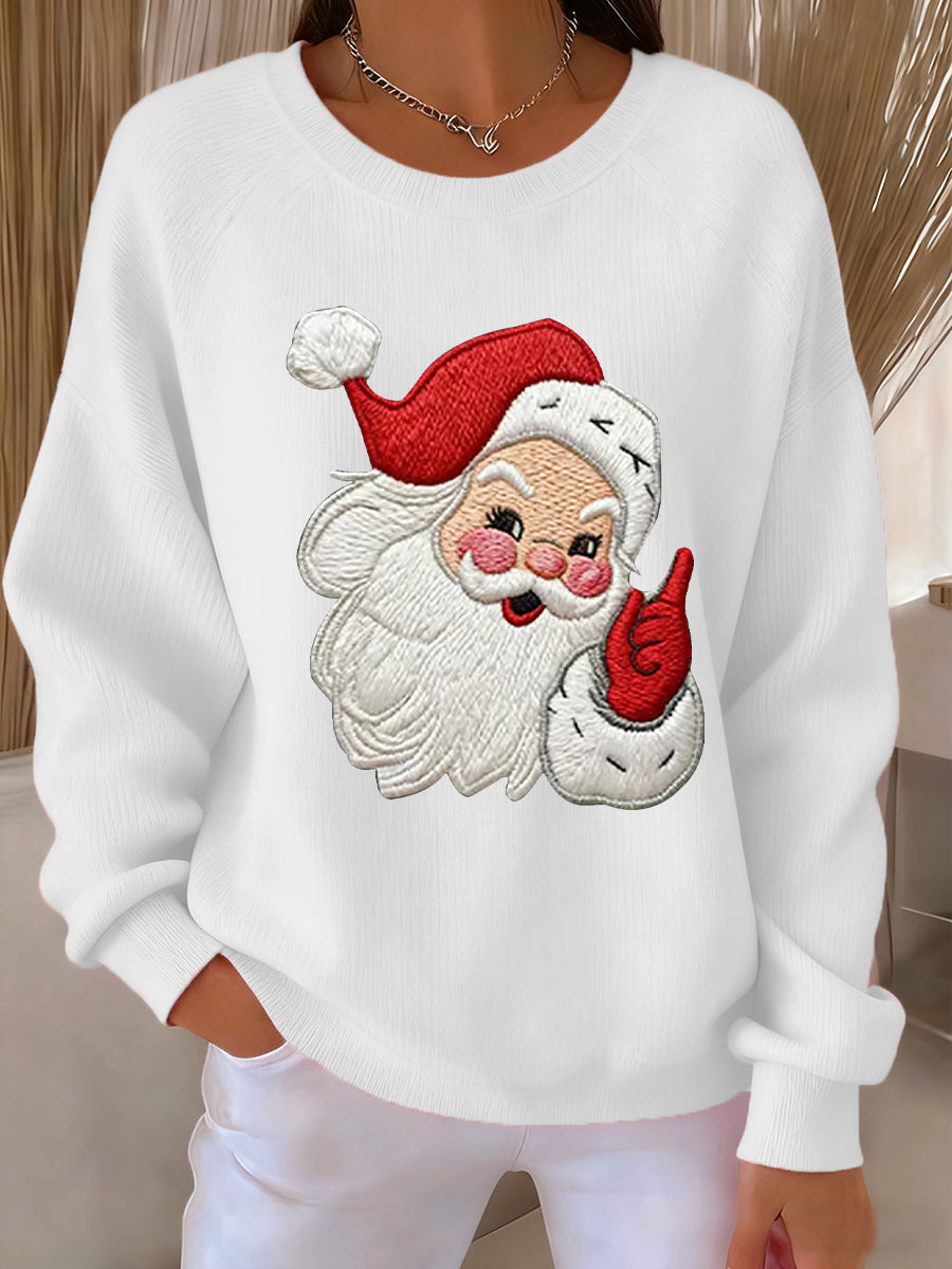 Women's Christmas Santa Claus Art Print Ribbed Round-Neck Sweatshirt