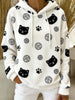 Women's Cute Cat Art Print Casual Flannel Hoodie
