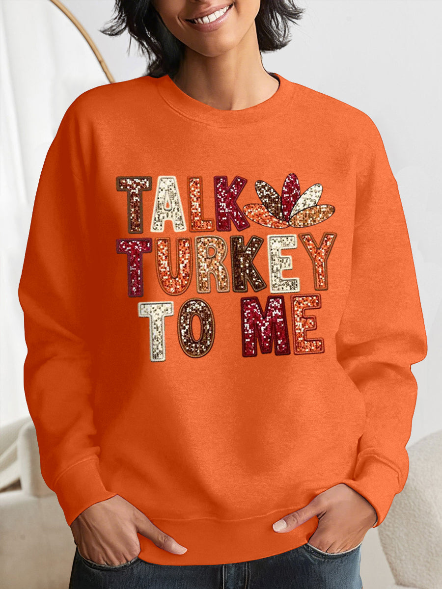 Women's Funny Thanksgiving Talk Tukey To Me Print Sweatshirt