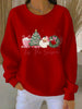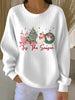 Women's Merry Christmas Christmas Santa Claus Christmas Tree Print Ribbed Round-Neck Sweatshirt