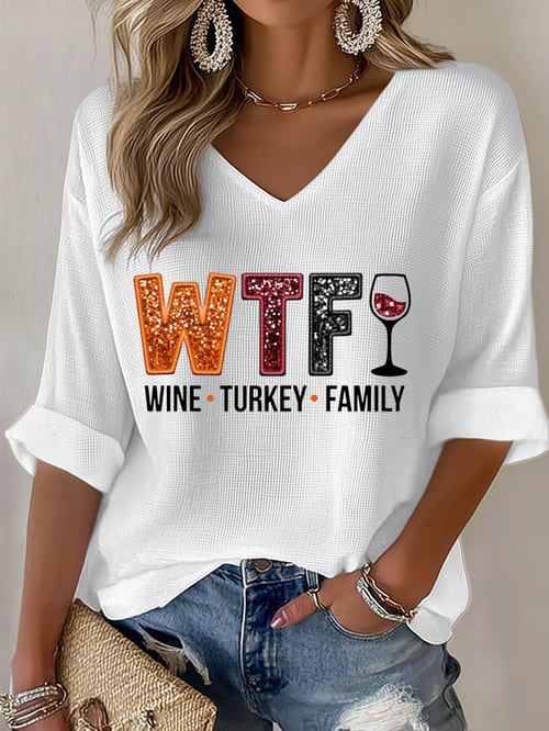 Women's Wine Turkey Family Waffle T-shirt
